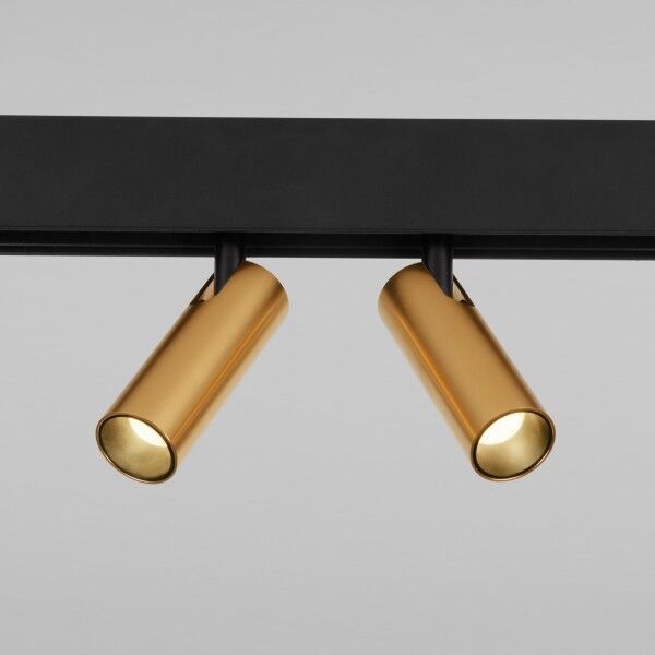 Двойные магнитные трековые споты Dual- это функциональные светильники, выполненные в трендовом цвете латунь. Встроенные светодиоды мощностью 7W каждый и углом рассеивания 20 ° создают равномерный световой поток, приближенный к естественному свету, а плафоны с поворотным механизмом позволяют регулировать направление светового луча.